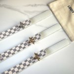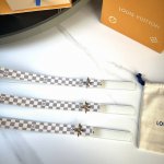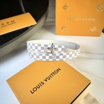 Original packaging. This season's new L0Uis Vuitt women's belt is 25mm wide and comes in a custom canvas top with a nubuck calfskin base. It features a brand new molded steel buckle and three color hardware options. This versatile, reversible design is perfect for any occasion.