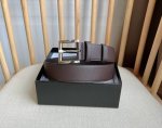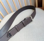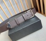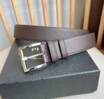 Prada Latest model from Prada counters This simple and sophisticated Saffiano leather belt features a metal buckle Triangular logo at the tip Saffiano leather with waxed finish and cross-line texture is the brand's signature material Unisex width 3.5