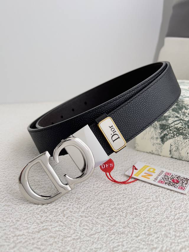 Product Name: Dior. Dior. Original belt. Belt Model: Buckle, original classic buckle, real-life photo. Top-grain cowhide material: 100% top-grain cowhide, guaranteed genuine leather. Double-sided, same quality as the counter, original classic top-grain cowhide with double-sided ball grain black coffee, bright silver swivel buckle, ideal for gifting or personal use. Packaging: Please identify the counter packaging as shown in the picture. NFC certification tag, free punch, original e-ticket, width 3.5mm.