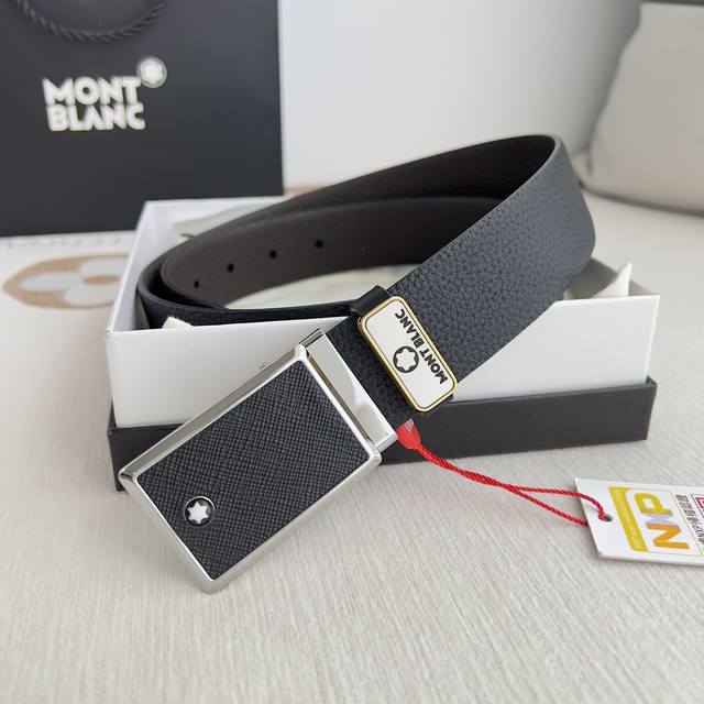 Product Name: Montblanc. Montblanc original belt belt model: buckle, new original classic boutique two-color buckle, real shot, original first-layer cowhide material: 100% first-layer cowhide, guaranteed genuine leather. Double-sided counter with the same quality, original double-sided first-layer leather lychee grain black coffee, boutique buckle, can be used on both sides, can be freely cut, preferred for gift or personal use Packaging: Please look for the counter packaging NFC tag as shown, free punch, original electronic ticket, width 3.5mm