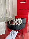 Salvatore Ferragamo 3.5cm leather, top-grain cowhide, black and brown, double-sided, exquisite 8-shaped fortune hardware buckle, original matching. J00130120
