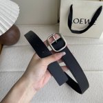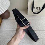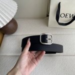 Special Loewe new vegetable tanned cowhide leather belt, the leather has been treated to age naturally and show its patina over time. Round buckle, 3.2cm wide, five-hole adjustment, engraved with the Loewe logo. Color: black with silver buckle