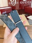 Stunning Gucci men's new square buckle belt. 3.5cm wide. Made of canvas with a gray monogram and imported pigskin texture. The exquisite black vacuum-plated square steel buckle is reversible.