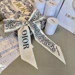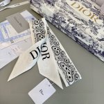 This Dior headband scarf draws inspiration from the iconic Dior boutique address. It features a slender silhouette with pointed ends and a jacquard pattern with the "Christian Dior" logo on the back. It complements any look and is the perfect finishing touch, whether worn around the neck, wrist, or handbag! The back is decorated with a jacquard pattern with the "Christian Dior" logo and has pointed ends. Made of 100% mulberry silk. Dimensions: 6 x 105 cm