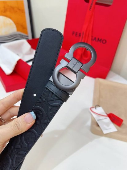 This reversible belt is a stylish and versatile accessory for men. Made from hammered cowhide on one side and selected natural grain cowhide on the other, it is finished with a gold-finished Gancini buckle and has a fine satin detail on the inside. Adjustable length. The belt can be cut or eyelets can be added for a tight or loose fit. 3.5 wide