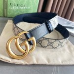 This year's most fashionable blue series Gucci calfskin stitching Gg Supreme monogram canvas, 3-hole adjustment, horizontal logo number: 625839 92Tlt width 3.0Cm retro Gg buckle