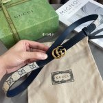 This year's most fashionable blue series Gucci calfskin stitching Gg Supreme monogram canvas, 3-hole adjustment, horizontal logo number: 409417 92Tlt width 2.0Cm retro Gg buckle