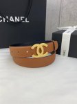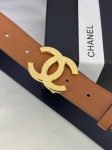Width 3.0Cm Chanel lychee grain double-sided cowhide with gold and silver sand surface steel buckle.
