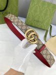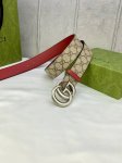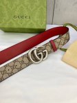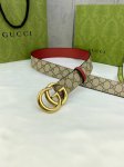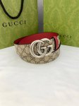 Width 4.0Cm Gucci double-sided belt, one side is Gg Supreme canvas, the other side is maroon calfskin. With interlocking double G buckle.