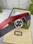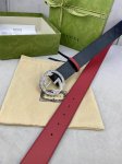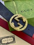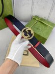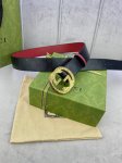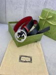 Width 4.0cm Gucci double-sided belt, one side is Gg Supreme canvas, the other side is maroon calfskin. With interlocking double G steel buckle, vacuum electroplated, thickness 6.0mm