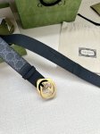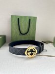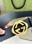 Width 4.0Cm This Gucci belt makes a stunning appearance in the brand's collection, featuring the brand's double G monogram in a classic ebony color combination, complementing the top-grain cowhide material. The two-tone hardware effect highlights the fashionable shape.