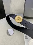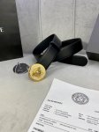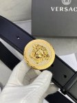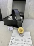 Width 4.0Cm Versace This belt is crafted in Italy from soft calf leather and features a gold and silver gunmetal oval buckle featuring a crystal-embellished Medusa.