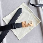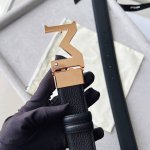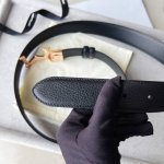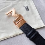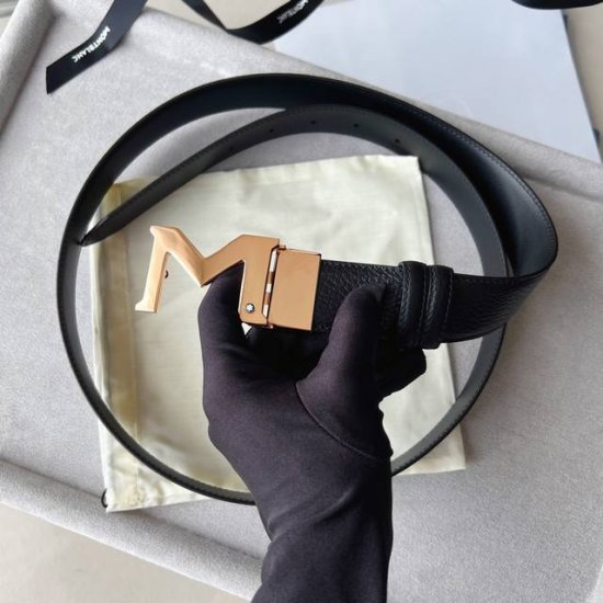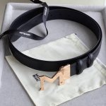 Black double-sided leather strap with "M" pattern buckle, 35mm