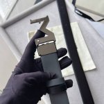 Black double-sided leather strap with "M" pattern buckle, 35mm