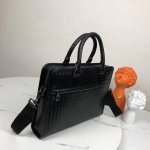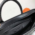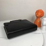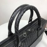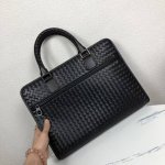Bottega Venet's premium men's custom briefcase is recognizable even without a logo. Adhering to traditional handcrafting, it features fully leather-bound, waxed imported cowhide with a seamless woven gunmetal-tone electrophoretic finish. Its low-key and practical design allows the leather to shine with use. Its spacious interior easily accommodates A4 documents and a 14-inch laptop. Its adjustable webbing strap and long shoulder strap make it an ideal mobile workstation for men. Model: 9981#, Color: Black, Size: 41 x 29 x 7 cm.