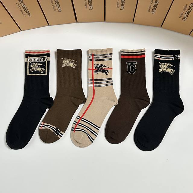 Special Packaging DDD Burberry Balenciaga New Mid-Length Slouch Socks! Five pairs per box, same style as in boutiques, a must-have for trendsetters, super easy to match DDD