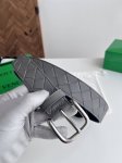 Bv 2025 Newest Men's Braided Belt, Handmade Intreccio Large Check Braid, Double-Sided Italian Calfskin, with a Slightly Retro Silver Buckle, Wide Body, Large Needle, Flat Hole Design, Pointed End, Belt Width 35mm, Color: Gray