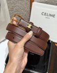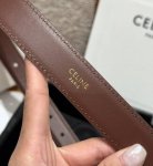 Celine 25mm Leather Strap Ddd This Taurillon leather strap features a cowhide lining, a mid-waist, gold-tone finish, a round buckle, and a Triaomphe metal ring encircling the entire loop. Ddd Width: 25mm DDD