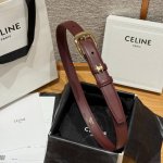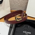 ). This belt features a calfskin leather lining, gold-tone finish, round buckle, and a Triomphe metal ring surrounding the first loop. Width: 25mm.