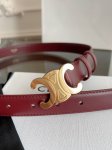 Celine women's belt, calfskin texture with unique Arc de Triomphe buckle, wine red color, width 2.4cm, low-key yet luxurious, easily brightens up your outfit. Hand-sewn