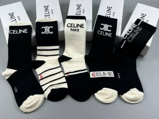 Special Offer: Celine's new women's mid-calf socks, five pairs per box. Made of pure cotton, soft, comfortable, and breathable. Featuring the classic Celine jacquard logo. A must-have for trendsetters, super easy to match!