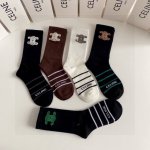 Special Packaging DDD Celine New Classic Embroidered Mid-Length Slouch Socks! Five pairs per box, same style as in department stores, designer street style, a must-have for trendsetters, super easy to match. DDD