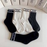 Special packaging from the official store! Celine's new subtle patterned mid-length slouch socks! Five pairs per box, same style as in official stores, designer street style, a must-have for trendsetters, super easy to match!