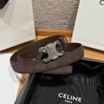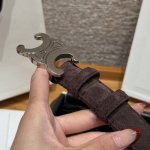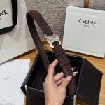 Celine Triomphe Medium Belt. This belt is made of suede cowhide leather with a s