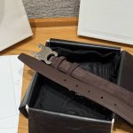 Celine Triomphe Medium Belt. This belt is made of suede cowhide leather with a split leather underlayer, gold-tone hardware, and a non-removable Triomphe buckle. Width: 25mm.