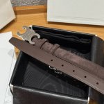 Celine Triomphe Medium Belt. This belt is made of suede cowhide leather with a split leather underlayer, silver-tone hardware, and a non-removable Triomphe buckle. Width: 25mm.