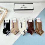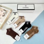 A box of five Chanel women's high-quality short socks with packaging. Absolutely stunning! A must-have for fashionistas, these are high-quality socks from a boutique. They create a super sophisticated and stylish look! Highly recommended! A must-have fashion item!! (