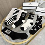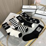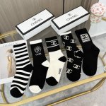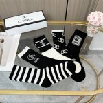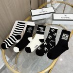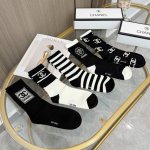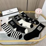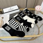 A box of five pairs of Chanel high-quality, super popular trending socks, featuring the same lettering as the official Chanel website, mid-calf socks, highly recommended by Instagram celebrities and influencers, made of pure cotton, lightweight, soft, and breathable, suitable for all seasons, a must-have for European and American high-end street style.