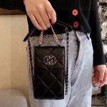Chanel 19 series mobile phone bag, exquisite workmanship, can be carried by hand or worn crossbody, with a large front and back pocket design. The front pocket can hold a phone, Bluetooth headset, and cosmetics, and the back pocket can also hold a phone. The inner coin pocket has a card slot. This bag can meet all your outdoor equipment. It is a fashion must-have. Classic black, size 19*10*5mm