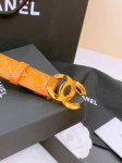 Chanel Logo Glossy classic Cc buckle brass gold metal 3.0Cm fine sheepskin belt feels soft and elegant