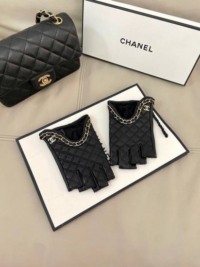 Chanel New Women's Half-Finger Gloves, Lambskin Chain, Ultra-thin, Soft, Comfor