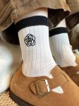 Chanel classic camellia embroidered logo pure cotton mid-tube socks, super popular on Instagram, the same style as celebrities, exquisite fabrics, a must-have for fashionistas, classic color matching, personalized fashion, versatile style, you deserve it