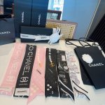 High quality dark pattern small pearls, same style as the counter! Chanel hair band ribbon style! Can be used as a small scarf, tied hair, tied handbags, tied on the wrist decoration! Multifunctional and you can match it as you like! Double-sided twill silk! Specifications 6*120!