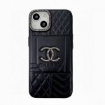 Iphone16 series update Chanel limited edition diamond embossed mobile phone case, diamond lens high protection, side leather full cover fashionable and luxurious