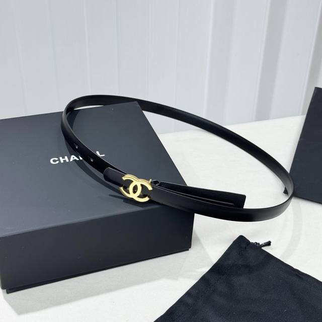 New Chanel Narrow Reversible Belt DDD Chanel's classic reversible belt, made of high-quality calfskin, is perfect for summer and goes well with both trousers and skirts. A truly versatile piece, its overall details are surprisingly impressive and its design is full of style DDD Width: 15mm Bright Gold DDD