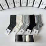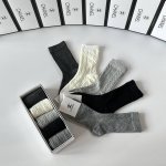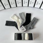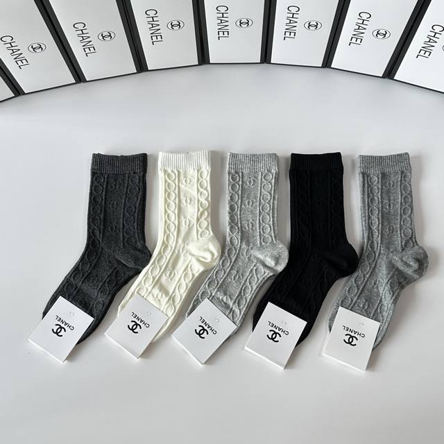 Chanel New Cashmere Mid-Length Slouch Socks! Five pairs per box, same style as in boutiques, a must-have for fashionistas, super easy to match.