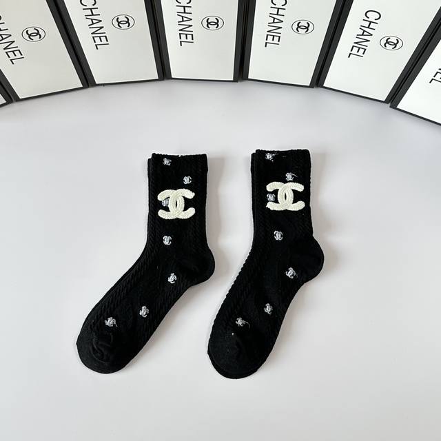 Chanel Popular Online Item #New Cashmere Socks Mid-Length Slouch Socks! Two pairs per box, same style as in boutiques, designer street style, a must-have for trendsetters, super easy to match~