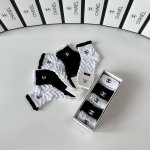 Specially packaged Chanel new embroidered mid-calf slouch socks! Five pairs per box, same style as in boutiques, a must-have for trendsetters, super easy to match.