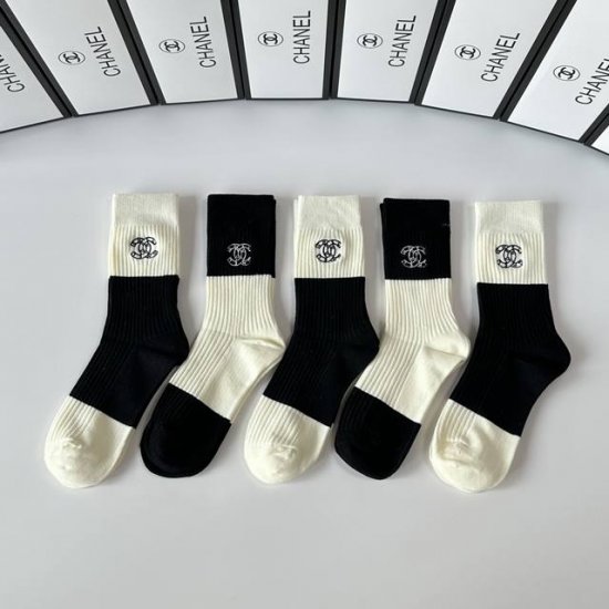 Specially packaged Chanel new embroidered mid-length slouch socks! Five pairs pe