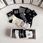 Specially packaged in Chanel's new mid-length stacked socks! Five pairs per box,