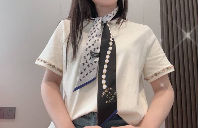 Two colors of small pearls in stock, same as the counter! Chanel headband ribbon style! Can be used as a small scarf, tied to hair, tied to handbags, tied to wrist decoration! Multifunctional and you can match it as you like! Double-sided twill silk! Specifications 6*120!
