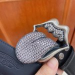 Chrome Hearts detachable brass silver-plated tongue hardware inlaid with zircon, imported waxed leather belt body decorated with pure copper silver-plated sword hardware, the overall integration of rock punk, Gothic, street hip-hop and other elements, its design style is unique, full of mystery and luxury. Width 3.8Cm.