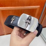 Chrome Hearts detachable pure copper silver-plated 925 buckle, with imported original leather trim and silver-plated sword details. It combines elements of rock punk, gothic, and street hip-hop, creating a unique design style full of mystery and luxury. Width 3.8cm. (