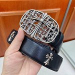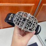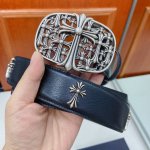 Chrome Hearts detachable tomb-style pure copper silver-plated 925 sterling brass clasp, with imported original leather trim and a silver-plated cross. It combines elements of rock punk, gothic, and street hip-hop, creating a unique design style full of mystery and luxury. Width 3.8cm. (