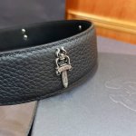 Chrome Hearts detachable silver-plated 925 brass clasp, featuring an imported top-grain cowhide strap adorned with a silver-plated sword. Combining elements of rock punk, gothic, and street hip-hop, its unique design exudes a mysterious and luxurious aura. Width 3.8cm. (