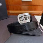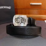 Chrome Hearts detachable silver-plated brass 925 buckle. The strap is made of imported oiled and waxed cowhide with a heat-pressed scout floral pattern that blends elements of rock punk, gothic, and street hip-hop. Its unique design exudes a mysterious and luxurious aura. Width 3.8cm.
